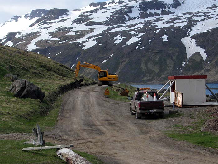 Djúpavík. Baustelle 1: Erneuerung des Strassengraben.