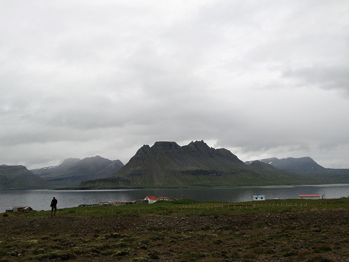 Ingólsfjörður. Gjögur, dahinter der Berg Kambur.