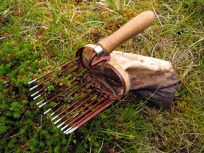 Djúpavík. Und das sehr praktische Grät zum Aufsammeln (isl.: "tína") von Beeren.
