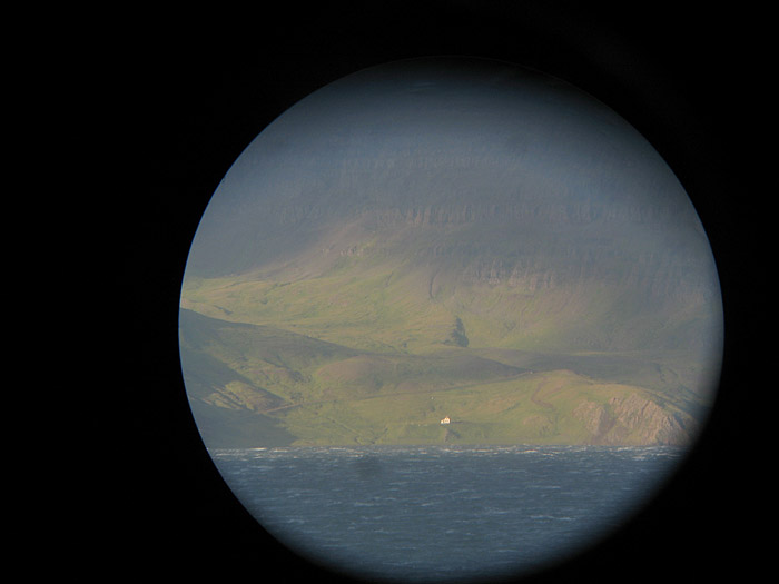 Djúpavík. Naustvík aus der Nähe, durchs Fernglas gesehen.