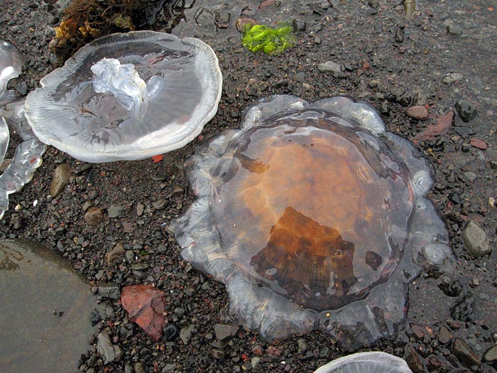 Djúpavík. Ausflug. Zwei tote (?) Quallen.