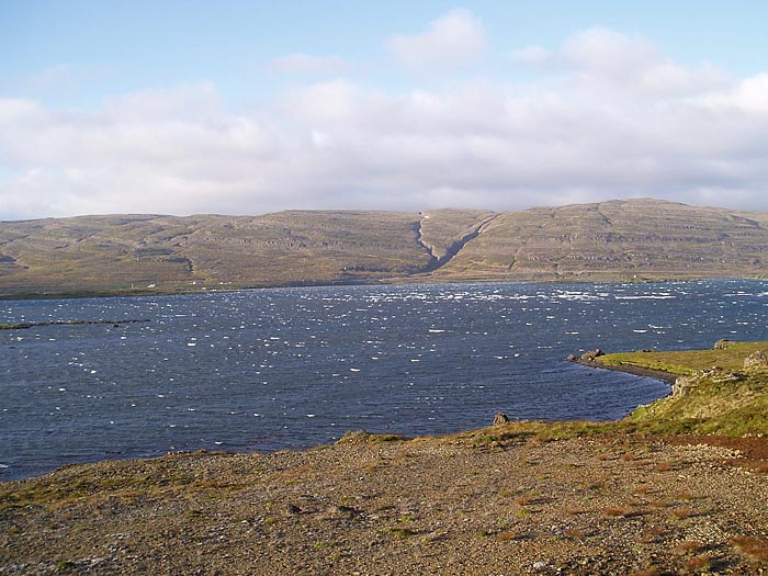 Ausflug. Blick über den Fjord Bjarnarfjörður.