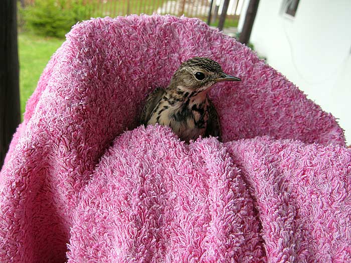 Djúpavík. Aber dieser Vogel wollte ins Hotel. Wir hatten ihn dann mit diesem schönen Handtuch wieder befreit.