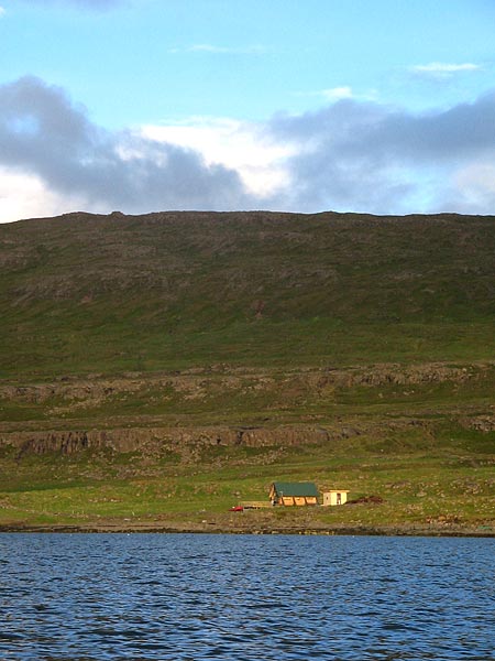 Djúpavík. Vorbei am Sommerhaus Kúvikur.