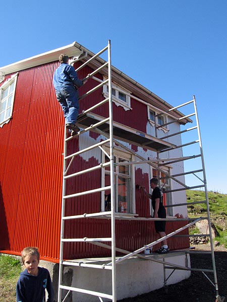 Djúpavík. Haus Álfasteinn, gehört auch zum Hotel, wird gestrichen.