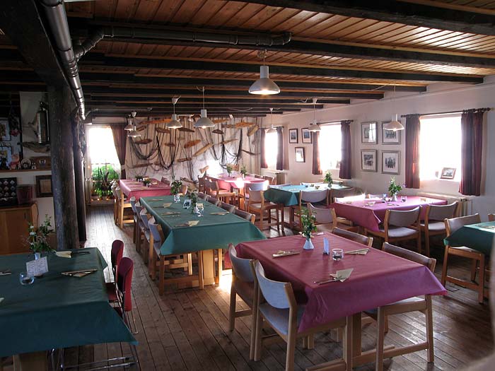 Djúpavík. Djúpavíkurdagar, Tag 2. Gedeckte Tische für das 4-Gänge-Abendessen.
