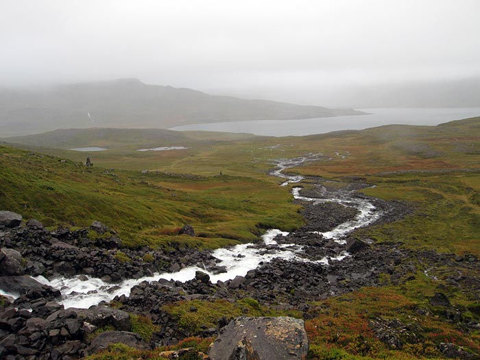 Djúpavík. Spaziergang. Blick über die Bucht Kjósarvík.