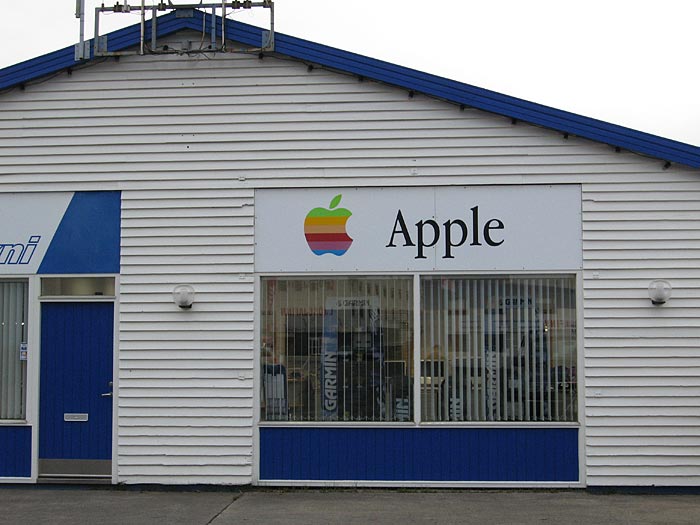 Akureyri. Ein Apple-Computer-Händler, noch mit dem alten farbigen Logo :-).