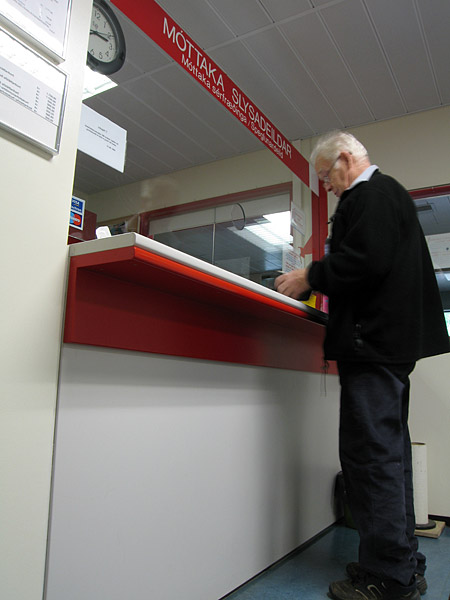 Akureyri. (Not-)Aufnahme und gleichzeitig die Kasse im Krankenhaus in Akureyri.