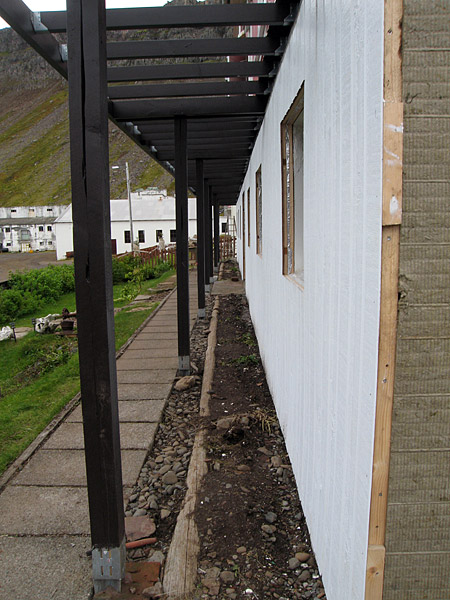 Djúpavík. Die Hausvorderseite ist nun weitgehend fertig isloiert.