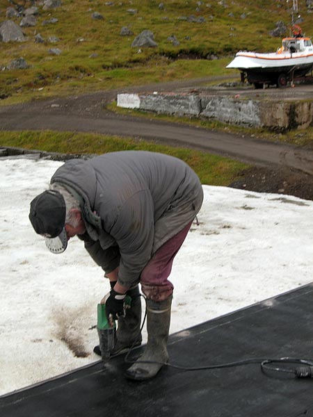 Djúpavík. Ásbjörn bohrt Löcher für ...