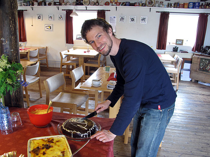 Und ich beim Aufschneiden meines Geburtstagskuchens... Danke schön! Leckerlecker...